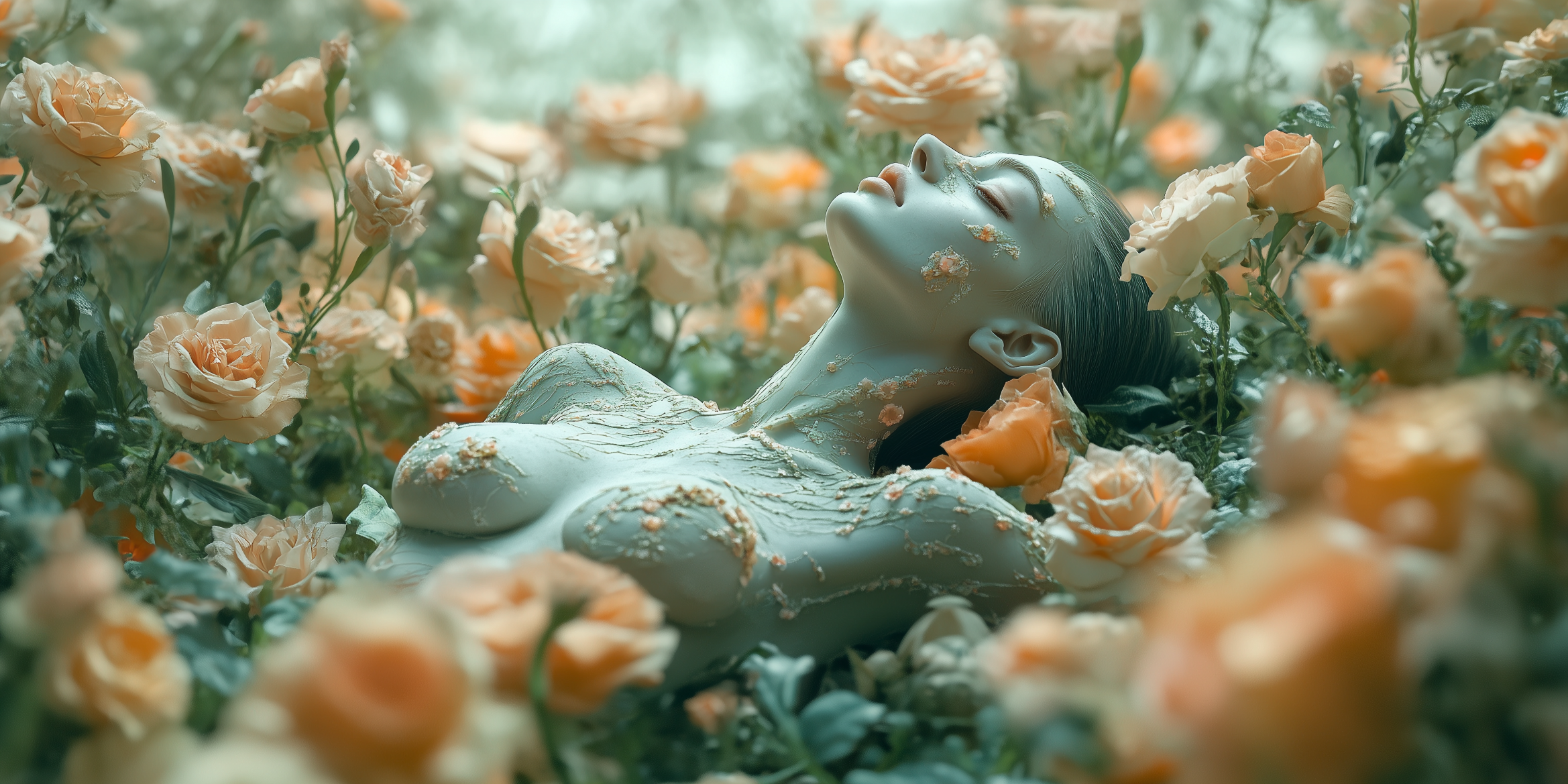 closeup of a many flower-shaped alien resting and enjoying herself on a strange and intensely reactive planet, bright light, light sky, flower soft image –style raw –ar 2:1 –c 35 –weird 10 –s 250 –v 6.1