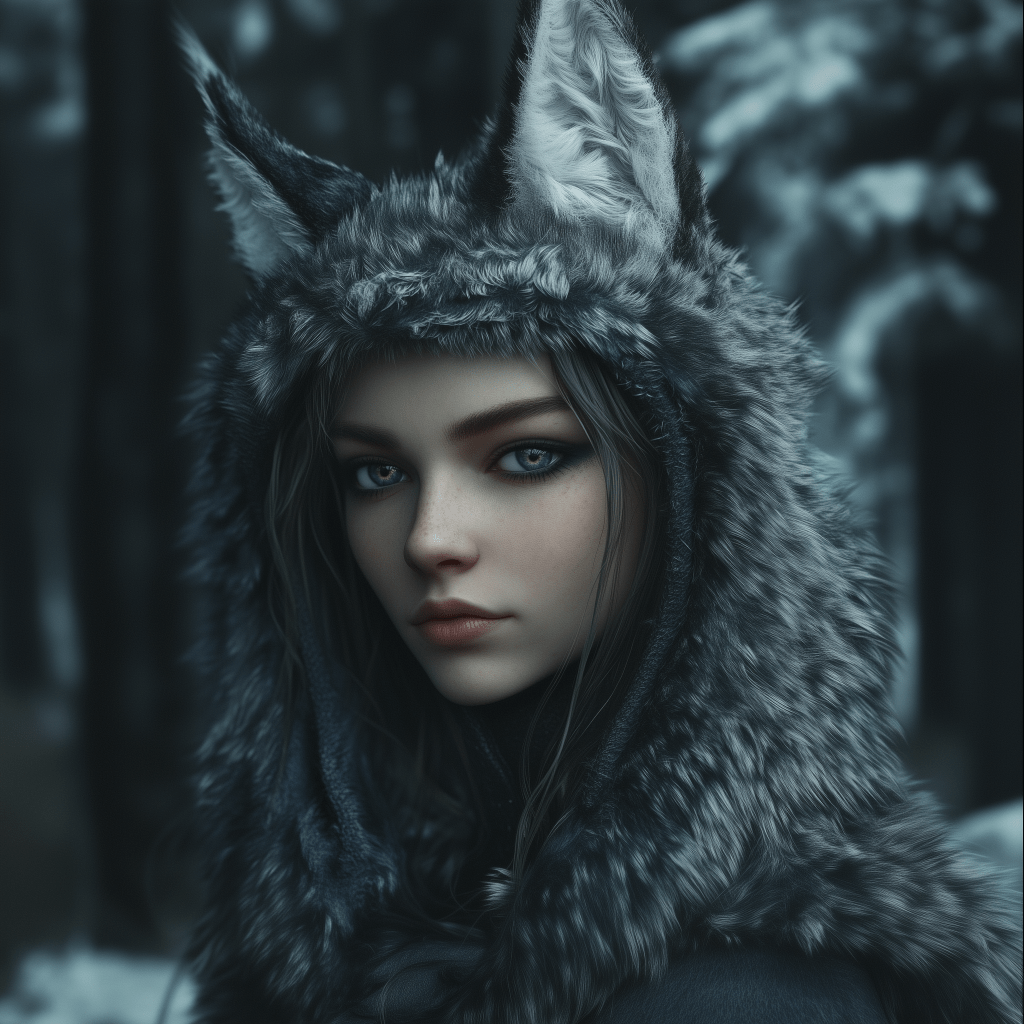 a closeup of a female dressed up as a furry animal in the style of enchanting realms, wlop, changelingcore, secluded settings, hyper-realistic, jan weenix, bunnycore –ar 1:1 –style raw –c 5 –stylize 50 –v 6.1