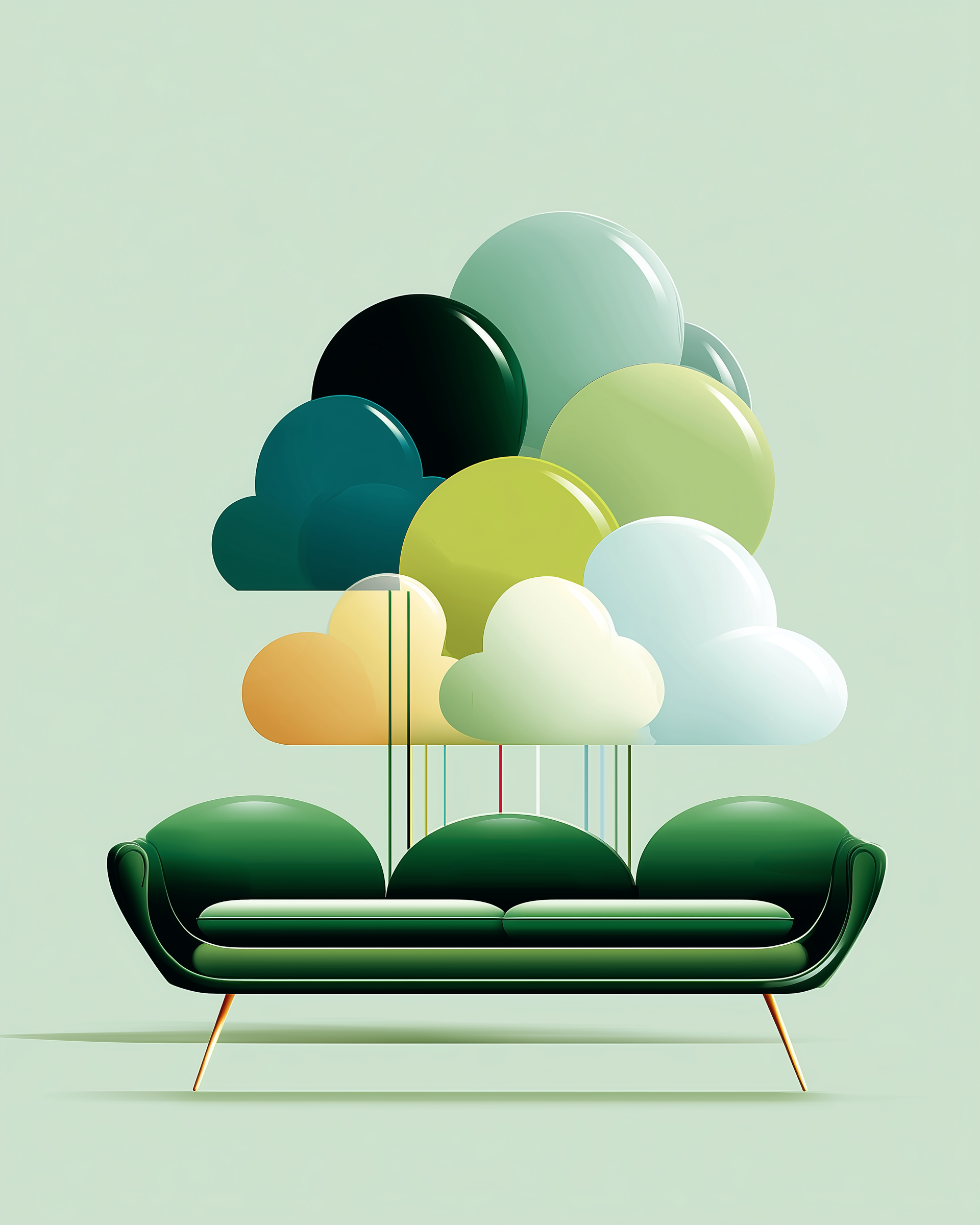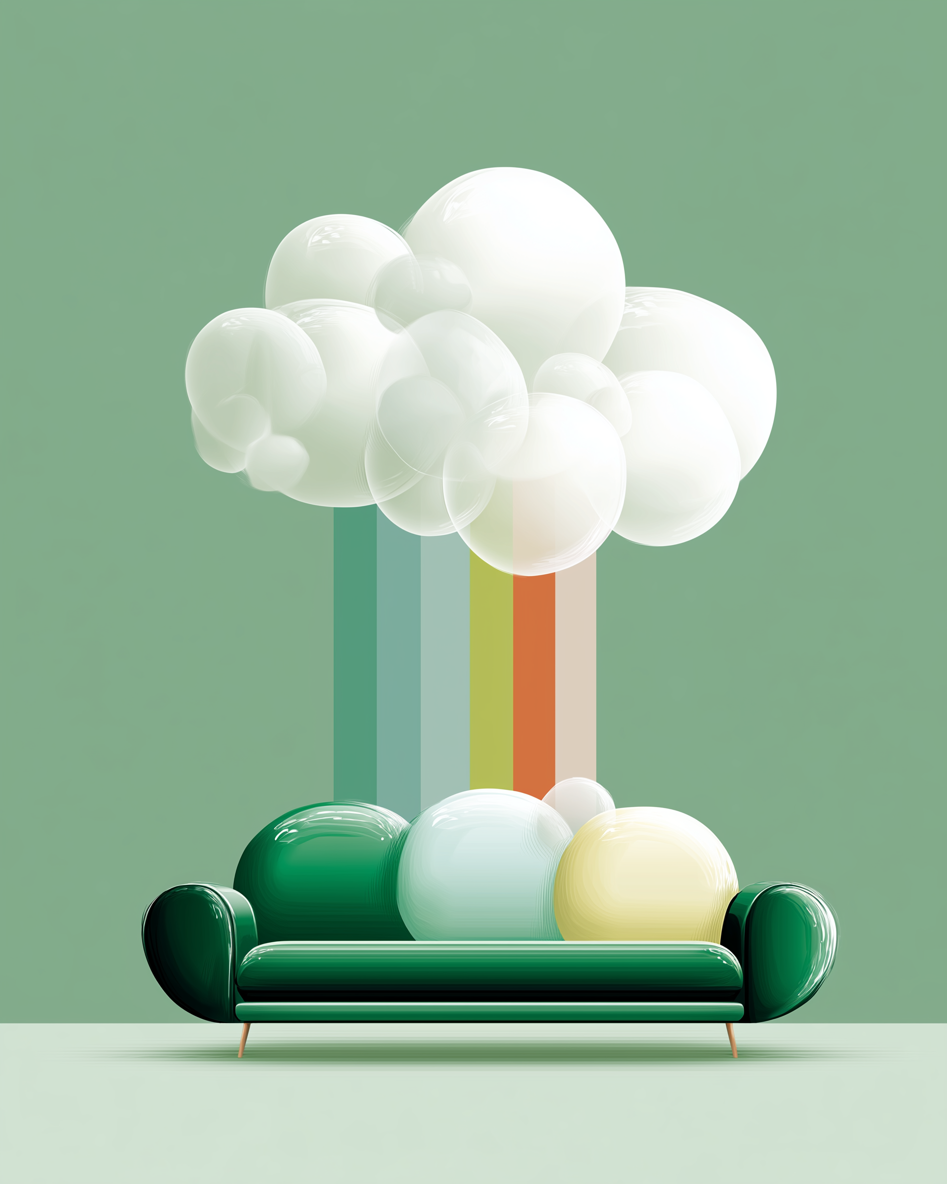 rainbow soft clouds, ethereal couch made of clouds –ar 4:5 –sref 234156073 –v 7.0 –p okg484f –raw