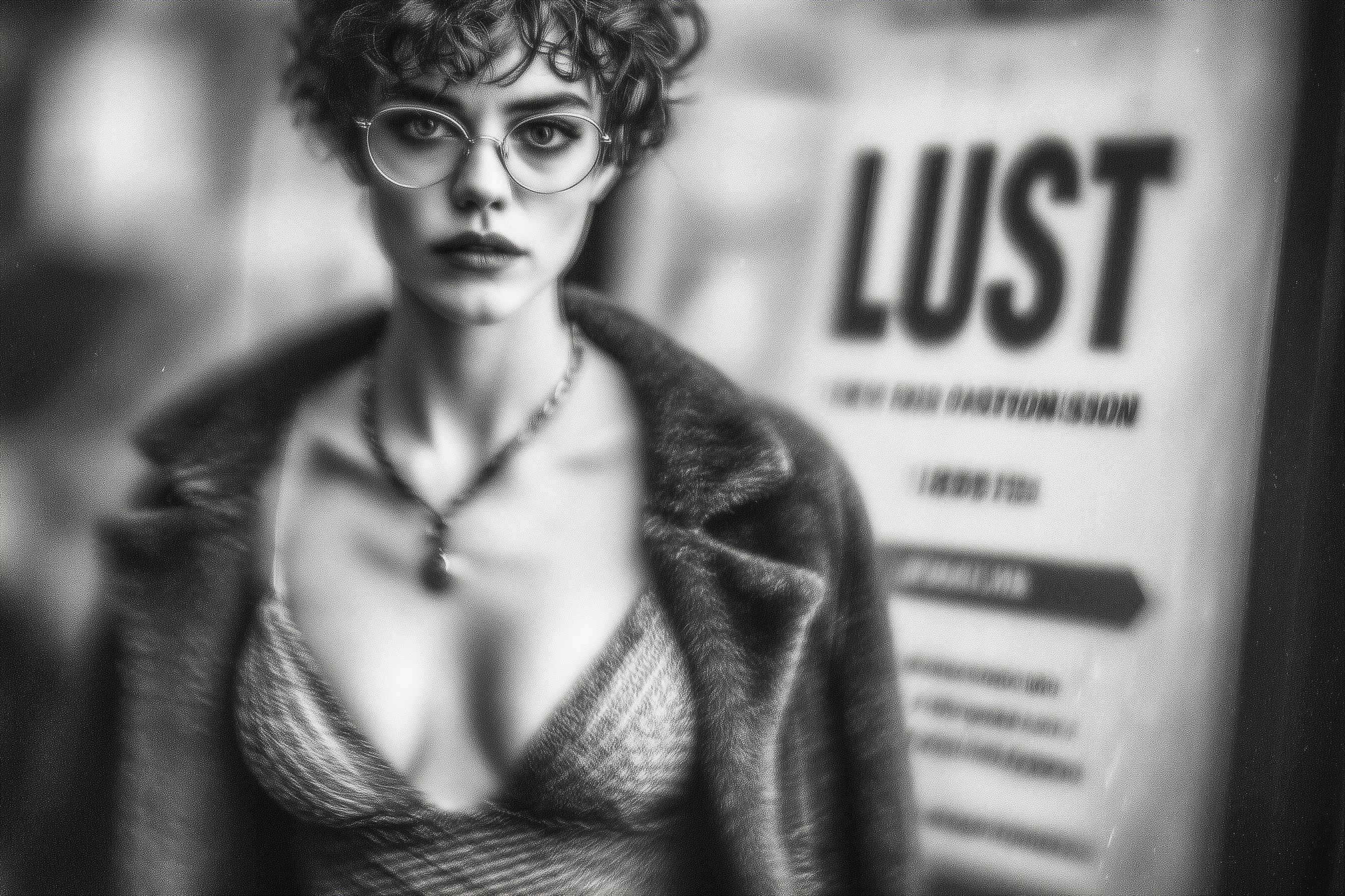 lust, bold, experimental, single subject focus, no signage, no typography, –c 70 –w 50 –exp 100 –ar 3:2 –v 7.0 –s 250 –raw