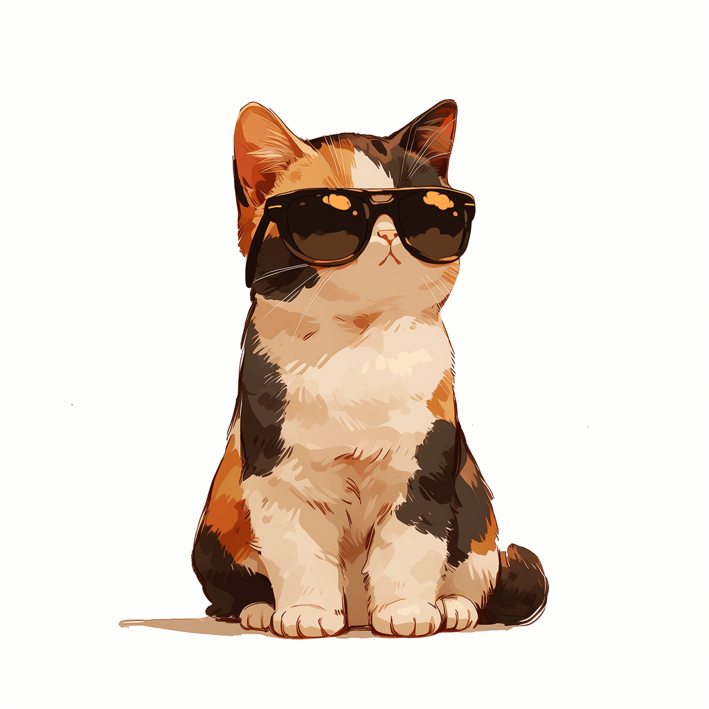 a sitting calico kitten looking forward wearing dark sunglasses –niji 7 –ar 1:1