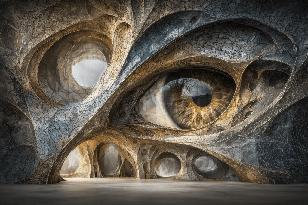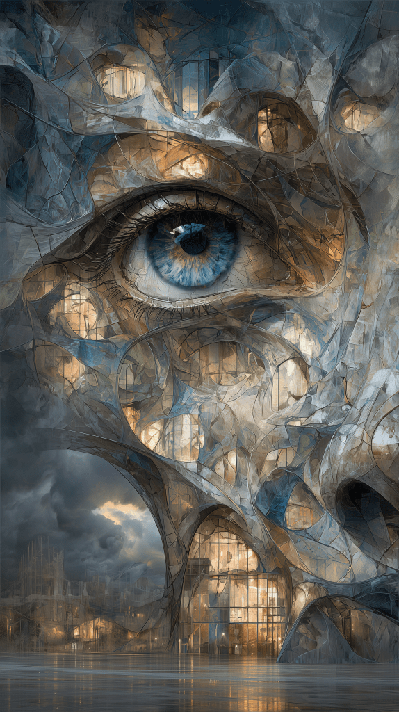 buildings transform in organic beings, windows gaze like eyes toward the sky, dreamlike ambiance, biomorphic architecutre, surreal composition, expressive lighting, 32k –c 20 –ar 9:16 –exp 25 –stylize 1000 –weird 100 –p inh4jj5 –raw